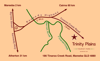 Trinity Plains Tourist Park is located at 186 Tinaroo Creek Road, Mareeba QLD 4880 on the Atherton Tablelands in Far North Queensland Australia.